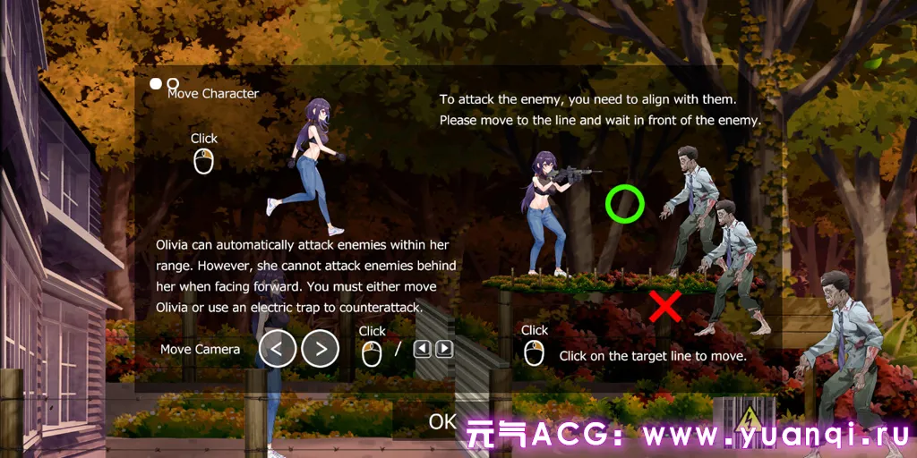 20XX年,一种类似狂犬病的病毒变种在一个城市爆发,将这座城市变成了地狱。城市中的人和动物都被病毒感染无差别地攻击人类。军队封锁了道路,试图阻止感染的扩散,同时城市周边还有散落的幸存者在等待救援。尸生存塔防SLG 构建防御线并从变种体的攻击中生存下来的游戏。变异体会残忍地侵犯并杀害被抓到的女性。 如果围栏被破坏并被敌人侵入,则游戏结束。四位女主角各自拥有特殊技能,使用的武器也不同。 通过有效利用女主角的战斗力和陷阱就能生存下来。即使失败,也可以加强武器并多次重新挑战,因此即使不擅长塔防的玩家也可以轻松享受。