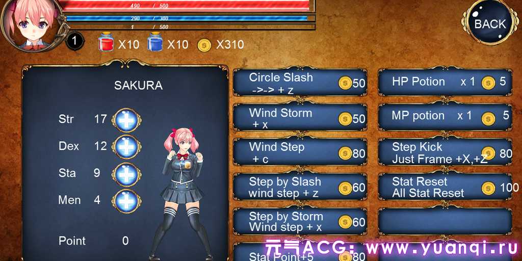 ★火焰少女樱-R FIGHTING GIRL SAKURA-R一款2D橫向捲軸学生制服動作格斗黄油推荐,PC版绅士游戏。按下時會出現 H 動畫。遊戲結束時,將會出現與舞台相符的動畫。 D= 選單 A 鍵 hp 藥水 S 鍵 mp 藥水 您可以在商店購買技能。